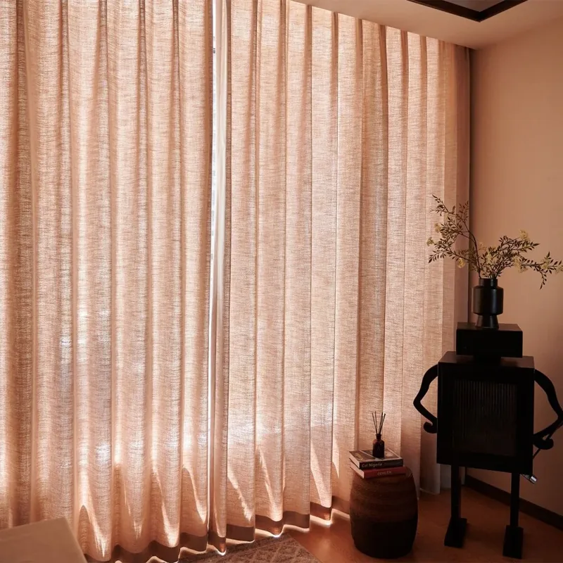 These sheer curtains provide an outstanding textured finish, rich and long-lasting colors, crafted from Premium yarn dyed linen fabric. They softly filter the daytime light, and their lightweight material is good for air ventilation.